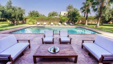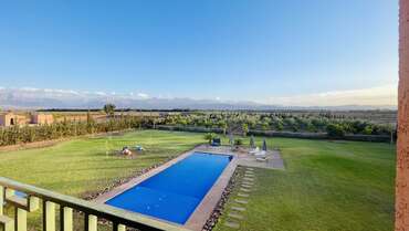 Cette maison d’hôte à Marrakech accueille quelques privilégiés en quête d’espace et de relaxation dans un cadre unique. Sise à 20 KM de Marrakech, Cette villa propose de vastes et confortables suites d’hébergement agencées dans un parc dominé par les cimes de l’Atlas. Espace entièrement dévolu à votre bien-être. Ce palais d'hôtes met à votre disposition une immense piscine bordée de palmiers, un spa superbement équipé et une bonne table à apprécier en compagnie de vos hôtes.