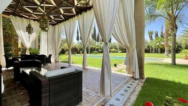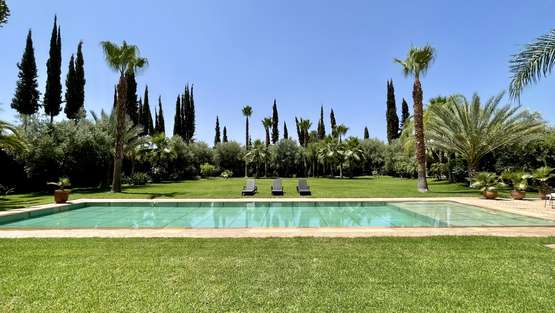 Magnifique villa de style Riad avec 4 suites indépendantes et 4 salles de bain. Toute la villa est de plain-pied sur un jardin majestueusement planté et arboré. De très belles terrasses vous attendent près de la piscine dans cette propriété de MAITRE construite sur un parc de 4200m2.