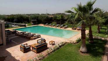 Étendue sur 800 m², dans un domaine privé de 12 000 m² avec piscine chauffée, vous pouvez louer en exclusivité cette villa de luxe de 2 à 16 personnes en famille ou entre amis pour un voyage à Marrakech en toute intimité.