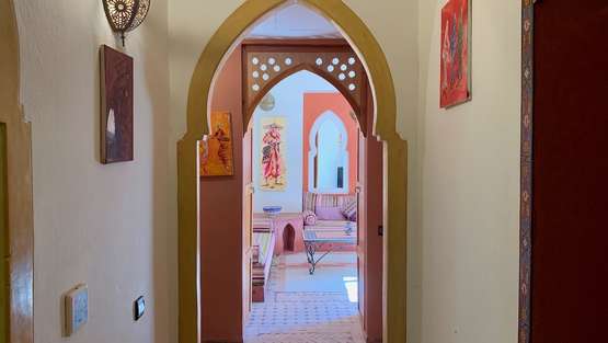 Appartement avec jardin situé dans une belle résidence fermée et sécurisée à Targa. Proche du centre commercial Carrefour à Targa. L'appartement comprend 2 chambres à coucher, 2 salles de bain, salon et salle à manger.