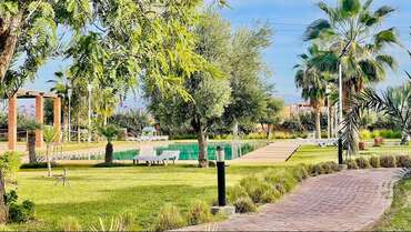 Vue panoramique sur l'Atlas. Les frais d'entretien jardin et piscine sont inclus dans le prix de la location.