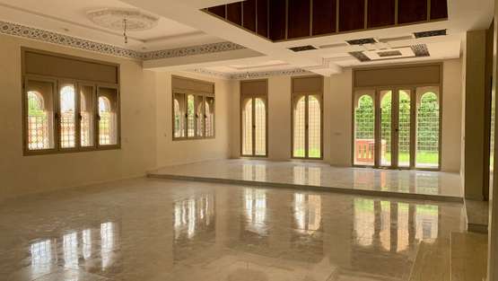Le sous-sol est élevé et comprend aussi une grande cuisine, 2 pièces, salon 2 cours anglaises, dont remonte au jardin, hammam beldi avec vestiaires et douche.