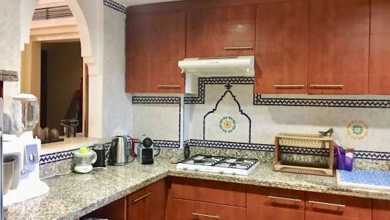 Exceptionnel appartement en rez-de-jardin de 116 m², idéalement niché au sein d'une résidence de standing, agrémentée de jardins luxuriants et de piscines, sécurisée 24/24. Dès l'entrée, vous êtes accueilli par un hall élégant, menant à une cuisine équipée avec une vaste buanderie.