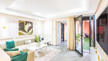 L’espace se compose d’un séjour accueillant, d’une chambre élégante, d’une salle de bain moderne, ainsi que d’une grande terrasse invitant à la détente et aux moments de convivialité en plein air.